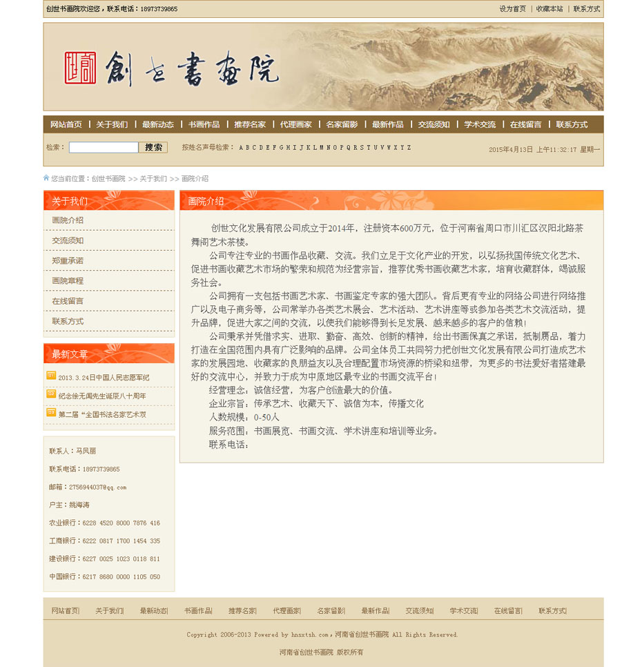 案例介紹:創(chuàng)世文化發(fā)展有限公司成立于2014年,注冊(cè)資本600萬(wàn)元,位于河南省周口市川匯區(qū)漢陽(yáng)北路茶舞閣藝術(shù)茶樓公司專(zhuān)注專(zhuān)業(yè)的書(shū)畫(huà)作品收藏、交流。我們立足于文化產(chǎn)業(yè)的開(kāi)發(fā),以弘揚(yáng)我國(guó)傳統(tǒng)文化藝術(shù)、促進(jìn)書(shū)畫(huà)收藏藝術(shù)市場(chǎng)的繁榮和規(guī)范為經(jīng)營(yíng)宗旨,推薦優(yōu)秀書(shū)畫(huà)收藏藝術(shù)家,培育收藏群體,竭誠(chéng)服務(wù)社會(huì)。